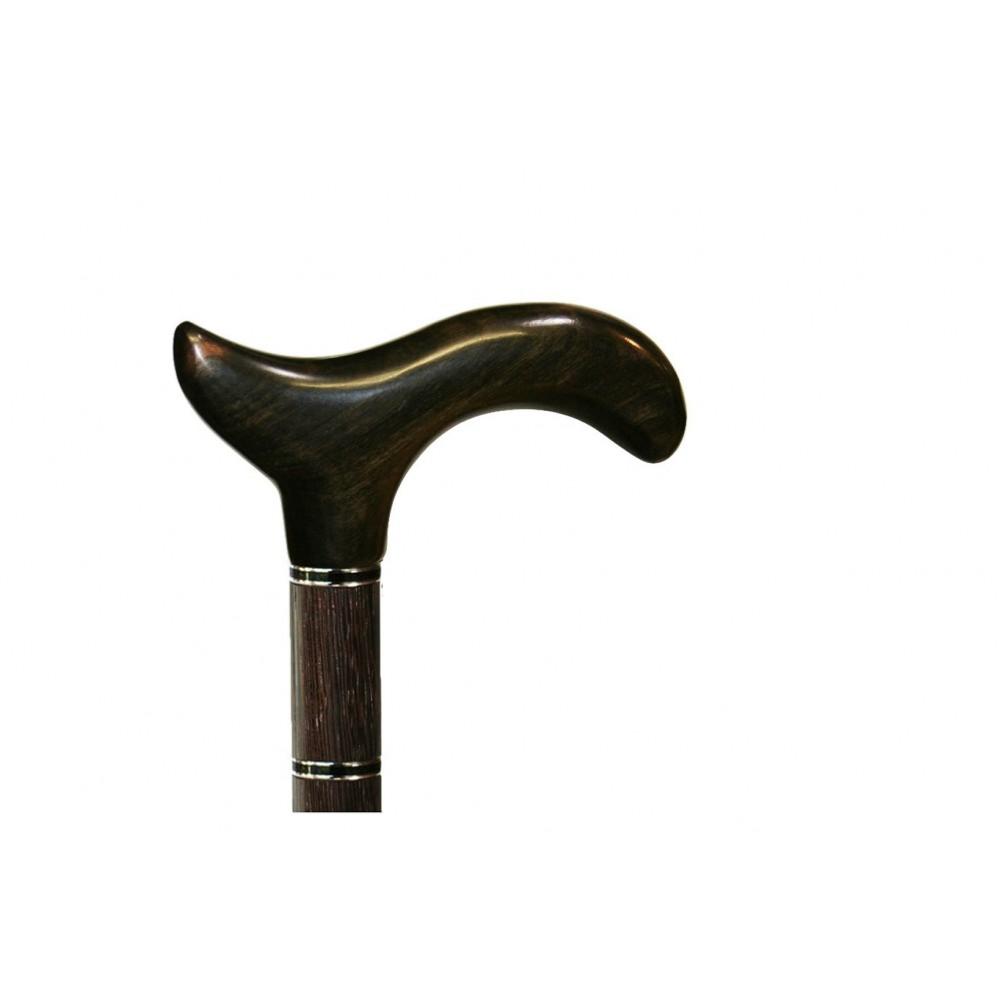 Canne épée DERBY avec pommeau en bois précieux ébène de Macassars finition bois poli miroir, fut en palissandre. Lame épée guillochée longueur 70 cm. Embout en corne + caoutchouc.